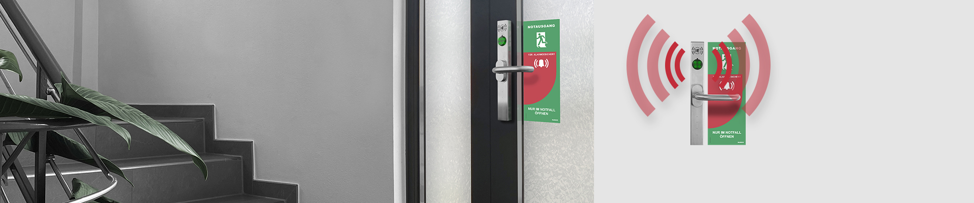 ● Sichere Fluchtwegüberwachung: Abschreckender Voralarm bei leichter Betätigung, Daueralarm beim Öffnen der Tür